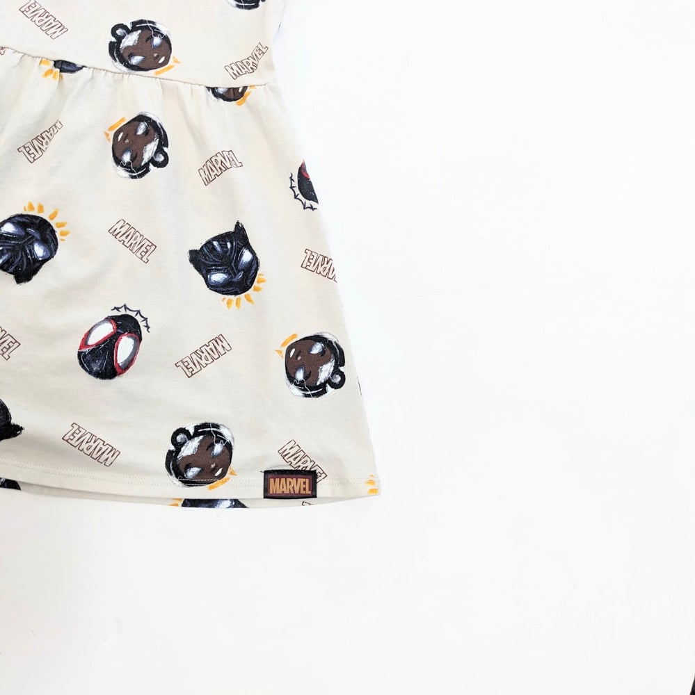 Girls' Marvel x Nikkolas Smith Trio Print Dress Beige Character