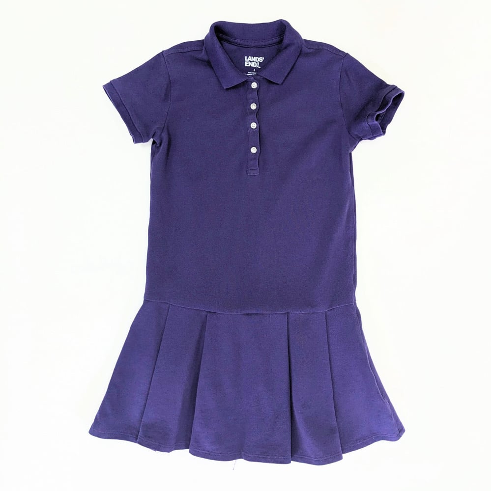 Girls Lands End size 6, deep purple School Uniform Short Sleeve Mesh Pleated Polo Dress with pleated skirt, folding collar and button-up front design. Breathable, soft mesh knit, Cotton-rich blend feels soft, is easy care. 60% Better Cotton™/40% polyester. Gently Loved. Good Condition.