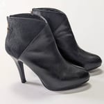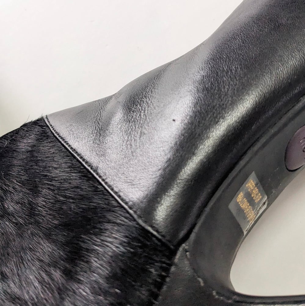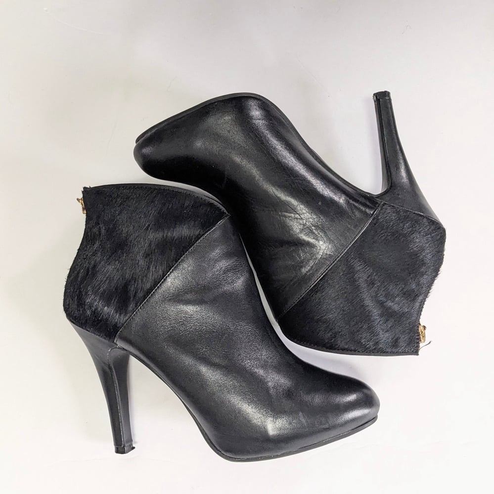 ...me Too Chic Black Leather & Cow Fur Ankle Boots