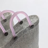 Western Chief size 9, 100% waterproof PVC toddler silver glitter rain boots with polyester lining and removable insoles, purple accented soles, reinforced pull handles and action lighted heels. Gently Loved. Great Condition!