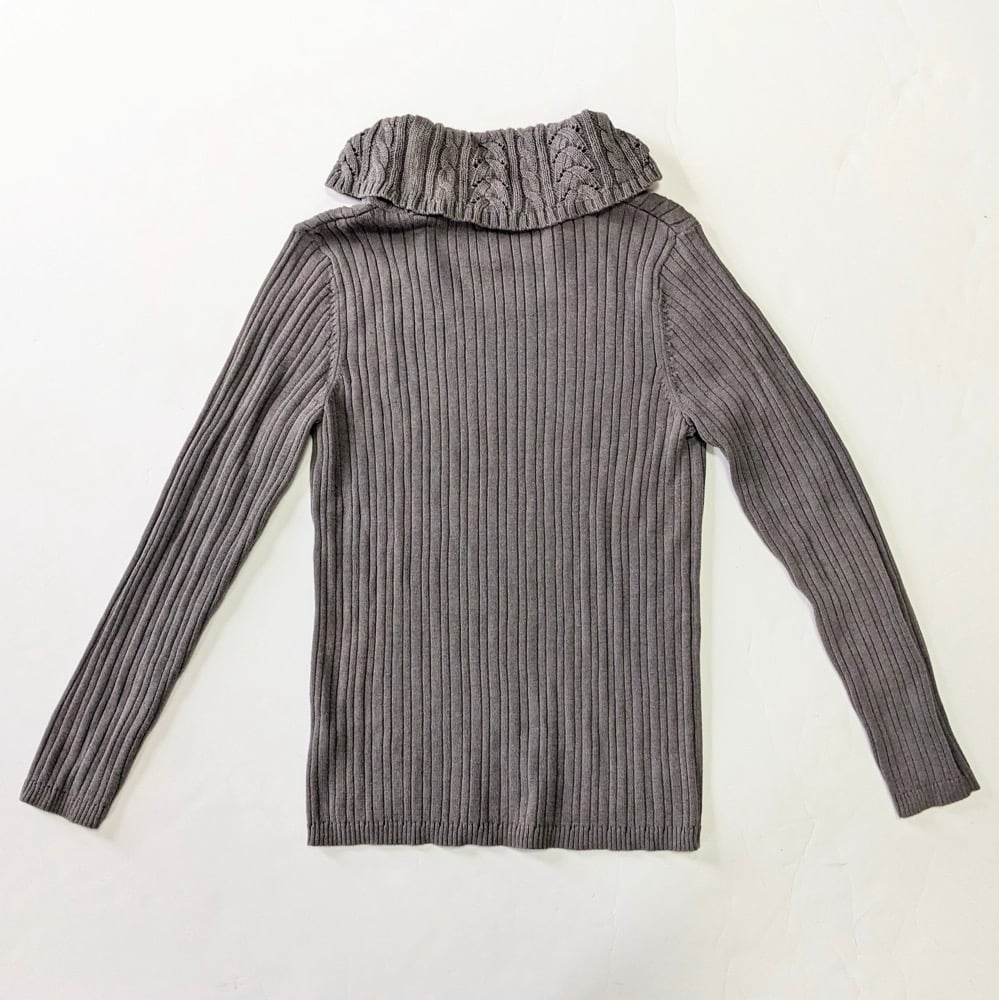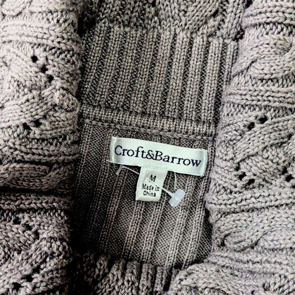 Women's Croft & Barrow size M dark gray, long sleeves, ribbed knit, fold over turtleneck sweater. Cozy design for a timeless look. 60% Cotton/40% Acrylic. Gently Loved. Great Condition!